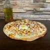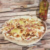 Crème fraiche, lardons, oignons, poulet, œuf, mozzarella